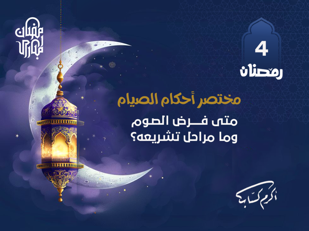- مراحل تشريع الصيام: فرض الصيام على مراحل، أولها عاشوراء، وثلاث مراحل كانت في رمضان، روى البيهقي عَنْ مُعَاذِ بْنِ جَبَلٍ رَضِيَ اللهُ عَنْهُ قَالَ: ” أُحِيلَ الصِّيَامُ ثَلَاثَةَ أَحْوَالٍ فَذَكَرَ الْحَدِيثَ، قَالَ: وَأَمَّا حَوْلُ الصِّيَامِ فَإِنَّ رَسُولَ اللهِ صَلَّى اللهُ عَلَيْهِ وَسَلَّمَ صَامَ بَعْدَمَا قَدِمَ الْمَدِينَةَ، فَجَعَلَ يَصُومُ مِنْ كُلِّ شَهْرٍ ثَلَاثَةَ أَيَّامٍ وَصَامَ عَاشُورَاءَ فَصَامَ سَبْعَةَ عَشَرَ شَهْرًا شَهْرَ رَبِيعٍ إِلَى شَهْرِ رَبِيعٍ إِلَى رَمَضَانَ، ثُمَّ إِنَّ اللهَ تَبَارَكَ وَتَعَالَى فَرَضَ عَلَيْهِ شَهْرَ رَمَضَانَ، فَأَنْزَلَ عَلَيْهِ {كُتِبَ عَلَيْكُمُ الصِّيَامُ} [البقرة: 183]. وبيان ذلك على هذا النحو: